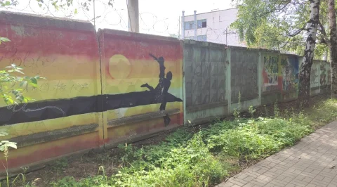 Деревьев здесь нет, и, вероятно, не будет. Посаженная у забора аллея журналистов не дает никакой спасительной прохлады.