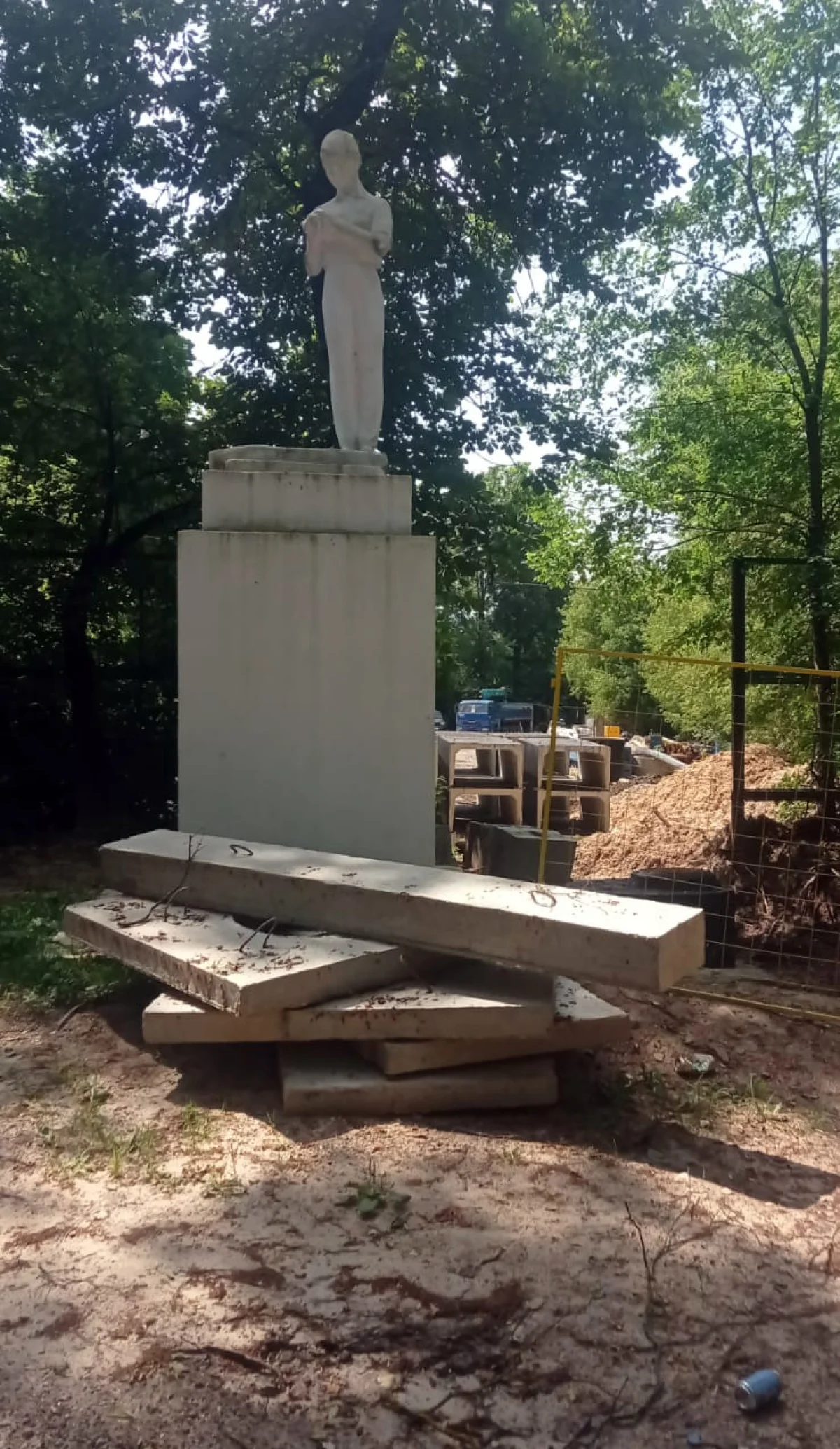 Его бюст украшает центр сквера. Вокруг, по традиции лавочки на солнце. Одну из них, вместе с бетонной урной, основательно потоптали вандалы. Скорее всего они же практиковались в настенной туалетной живописи, подмалевывая непристойности к граффити на бетонном заборе сквера.