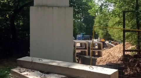 Мало того, территорию бывших теннисных кортов заняла коммунально-строительная организация. На площадке стоит техника, складированы бетонные колодцы, всевозможные коммунальные механизмы. По самой аллее протянута труба, шумит техника. В общем, отдохнуть на стройке – удовольствие то еще.