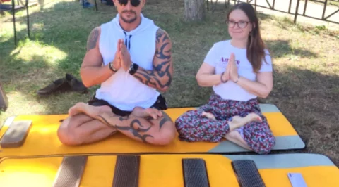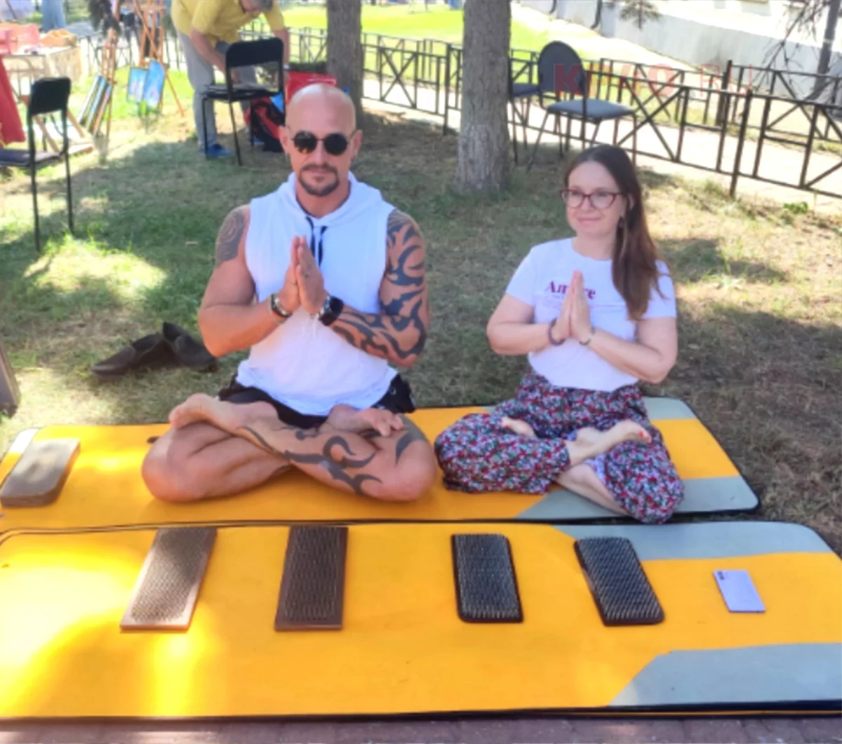 И вдруг среди всего этого художественного арт-пространства замечаем йога, перед которым аккуратно разложены пластины с гвоздями.