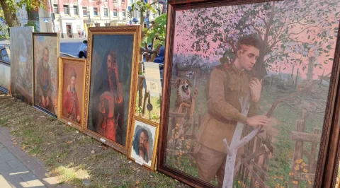 У Дома музыки развернулась Арт-поляна. Мастер-классы по рисунку, картины, старинная живая музыка.