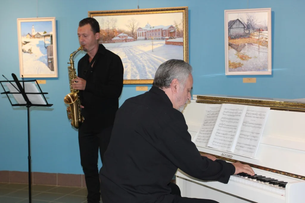 На вернисаже Гарри Азатов вместе с сыном Романом, основателем проекта «Jazzatov GIGA BAND», подготовили всем подарок - сыграли несколько красивых авторских вещей, некоторые из которых в Калуге были исполнены впервые.