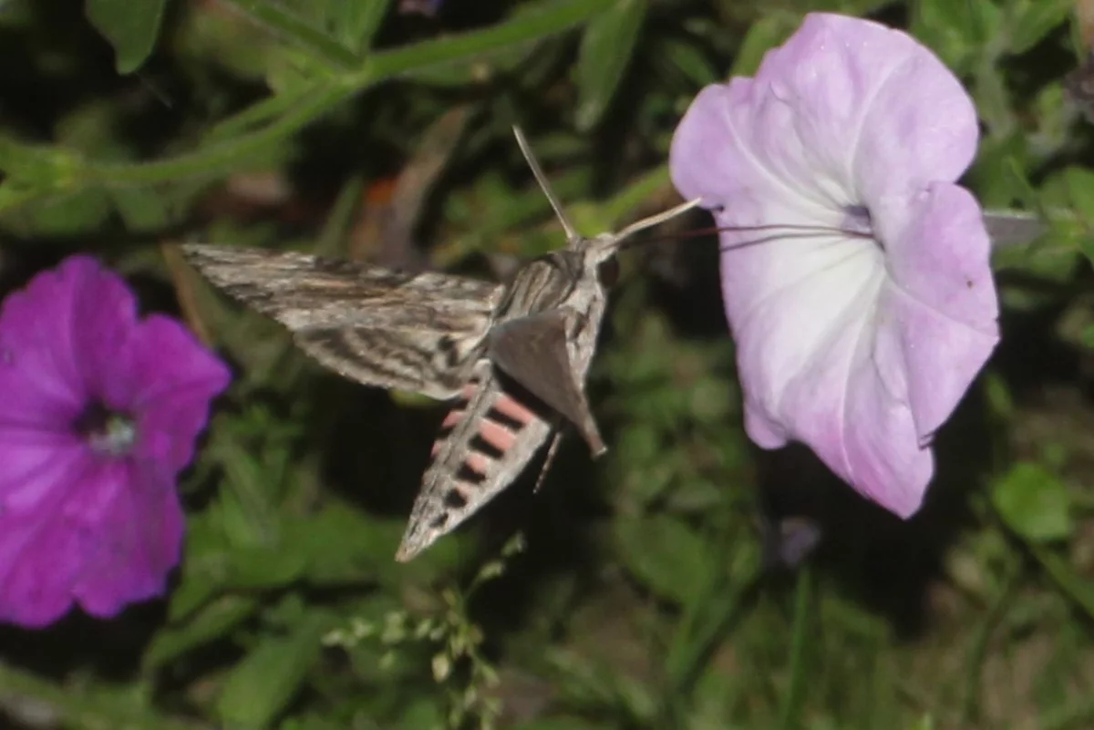 Летают возле петуний и мирабилиса (ночная красавица), целыми стайками.