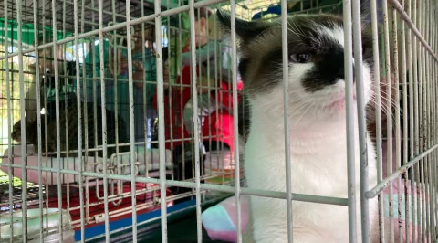 Первой нашей собеседницей стала Анастасия Исафова. Она представляет приют «Помоги жить». Он привез на мероприятие 10 щенков и двух кошек, которых недавно подкинули в приют.