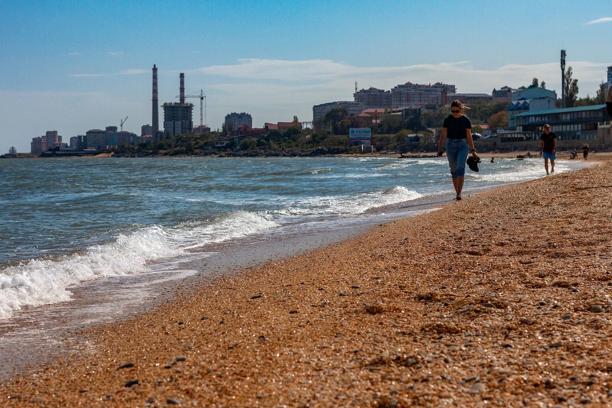 Море я видел мельком. Народ на пляже выглядит очень контрастно: кто-то купается, а кто-то ходит в куртке. Потрогал воду: теплая, но искупаться не было времени.