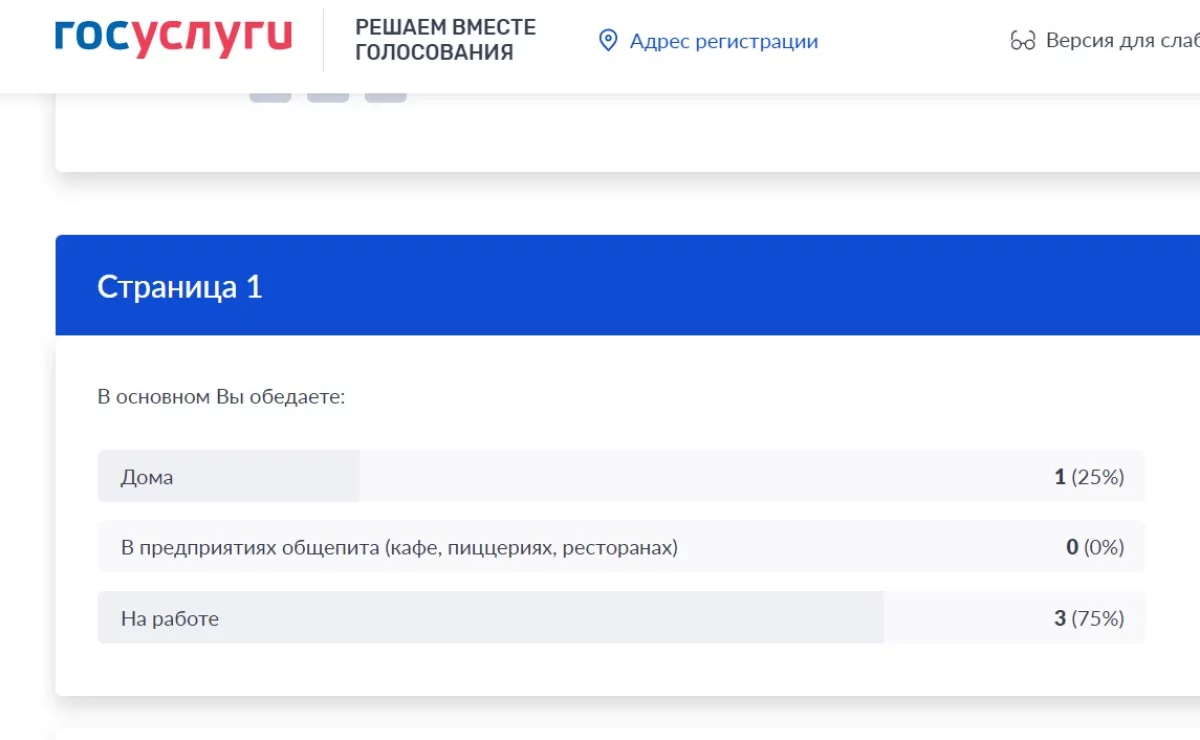 Например, на Госуслугах, калужские чиновники спрашивают простой люд: «Где вы обедаете?» На этот вопрос ответило четыре человека.