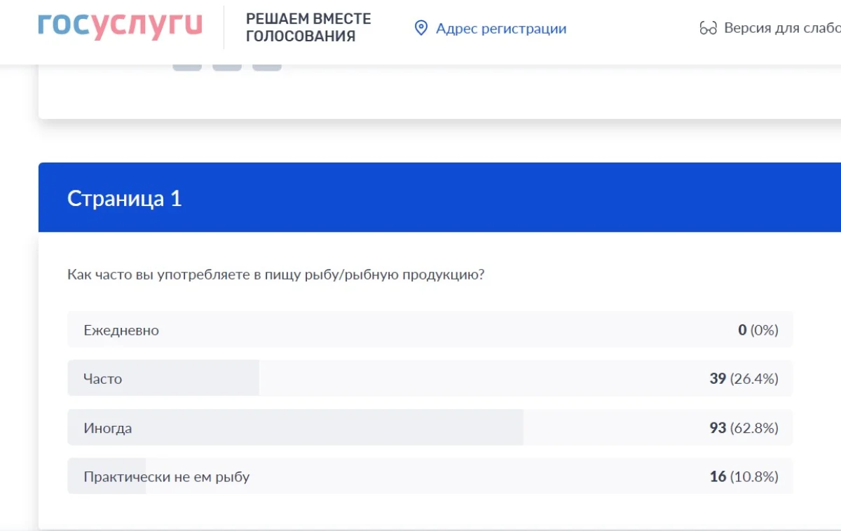 Или еще вопрос: «Как часто вы покупаете рыбу и рыбную продукцию?» Ответило 148 человек.