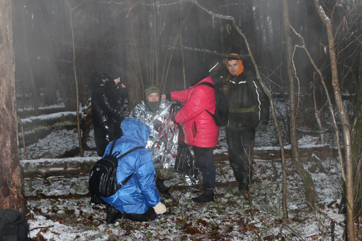 Обернули в спасательное одеяло, обогрели чаем из термоса, отвели в штаб.
