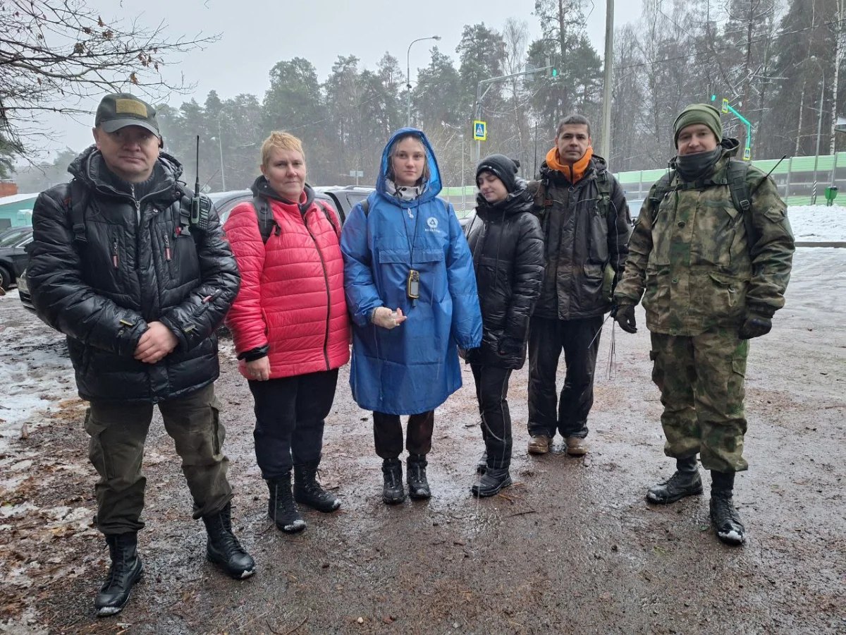 Наша группа выходит на поиск. В роли условной потеряшки боец отряда «ЛизаАлерт».