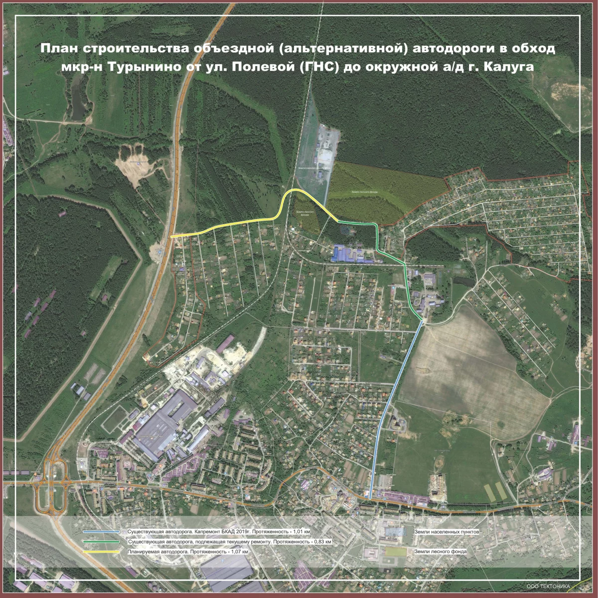 Она пройдет по нынешнему Тарусскому проезду, мимо Новождамировской, собачьего приюта, по Кольцевому проезду и закончится соединением с объездной дорогой в районе теплиц.