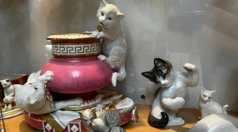 История музея началась более 20 лет назад и на данный момент в нем собрано более 5 000 предметов. Здесь и часы в виде усатых мордочек, хвостатые кружки, винтажные плакаты с котами.