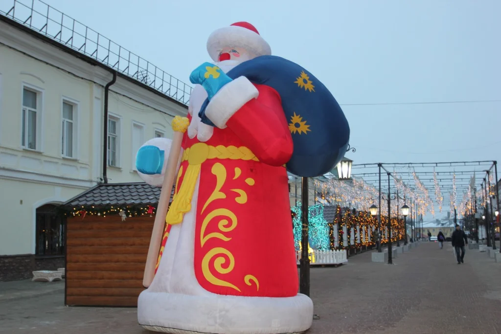 На пешеходной части ул. Театральной поставили ярмарочные домики, надувного Деда Мороза и инсталяцию со светящимся деревом и зайцами под ним. Вечером смотрится красиво.