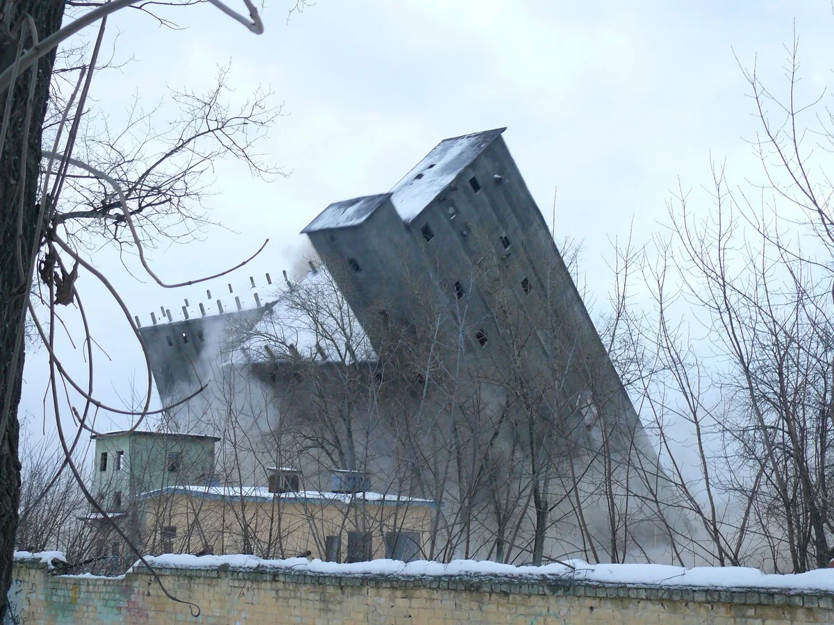 Посмотреть, как рухнет некогда самое высокое здание в городе, собралось несколько десятков человек… На месте бывшего мелькомбината в Калуге планируют построить жилой квартал».