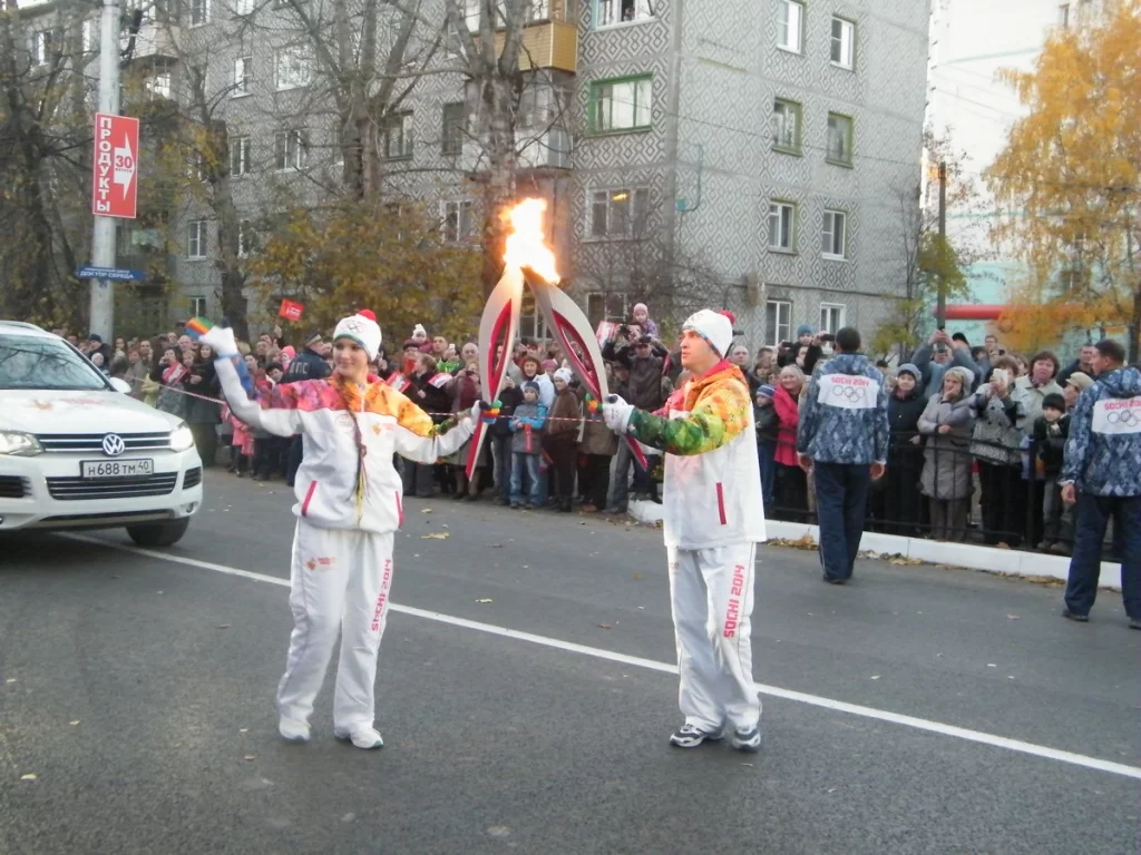 В августе памятник поставили на перекрестке улиц Пушкина и Баумана, но сразу же завернули в ткань. Оказалось, что открыть факелоносца мешают правила использования олимпийской символики».