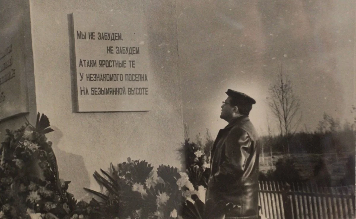 На постаменте были высечены слова из песни «Не за будем, не забудем атаки яростные те. У незнакомого поселка не безымянной высоте».
