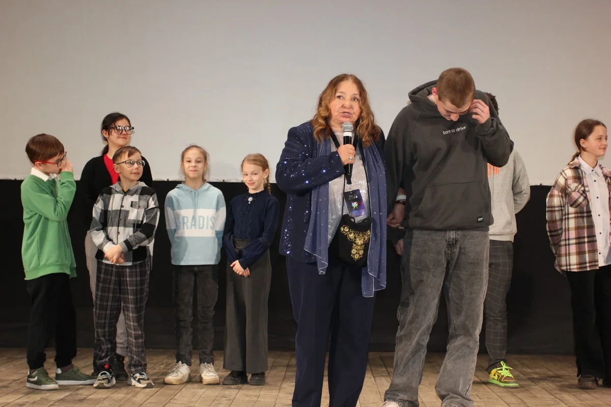 В зале собрались люди разных возрастов. Было много школьников. Наталья Сергеевна появилась на сцене в блестящем наряде, посмотрела в зал и, увидев детей, позвала их на сцену.
