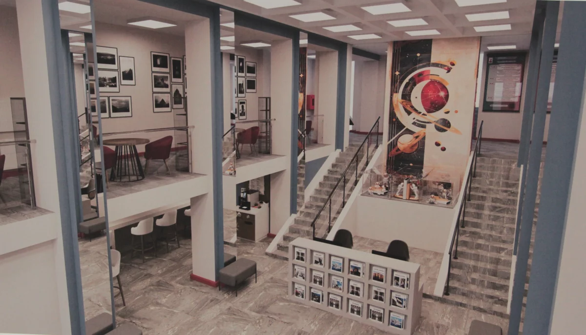 Но одни из проектов – особенный. Это интерьеры самой библиотеки им. Белинского. Конечно, сейчас библиотека выглядит тускло и серо.