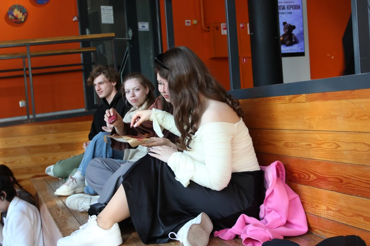 После того, как зрители устроились в амфитеатре, Екатерина угостила всех шоколадным брауцни и объявила, что это скорее разговор, а не лекция.
