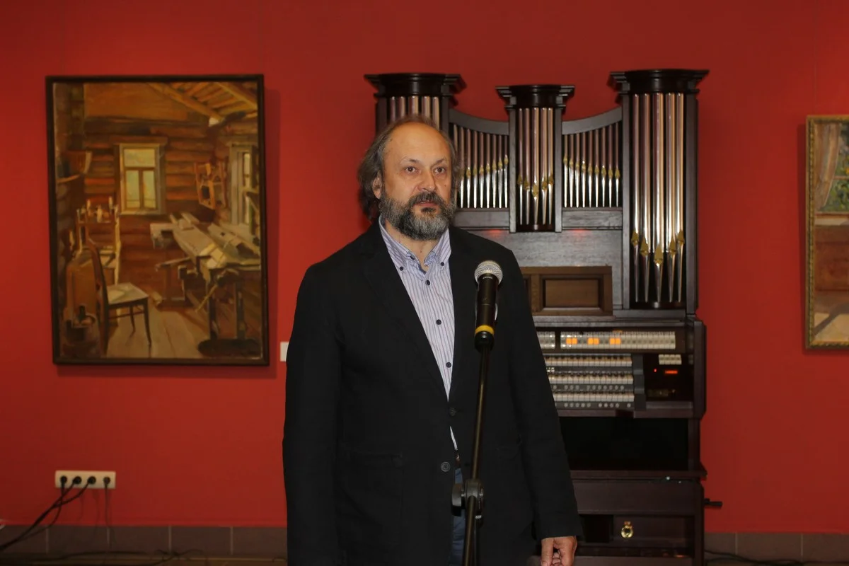 Открылась выставка под музыку Баха, которую на органе исполнила Виктория Тантлевская. Атмосфера была позитивной, доброжелательной. Все общались, профессора поздравляли с персональной выставкой, дарили цветы.