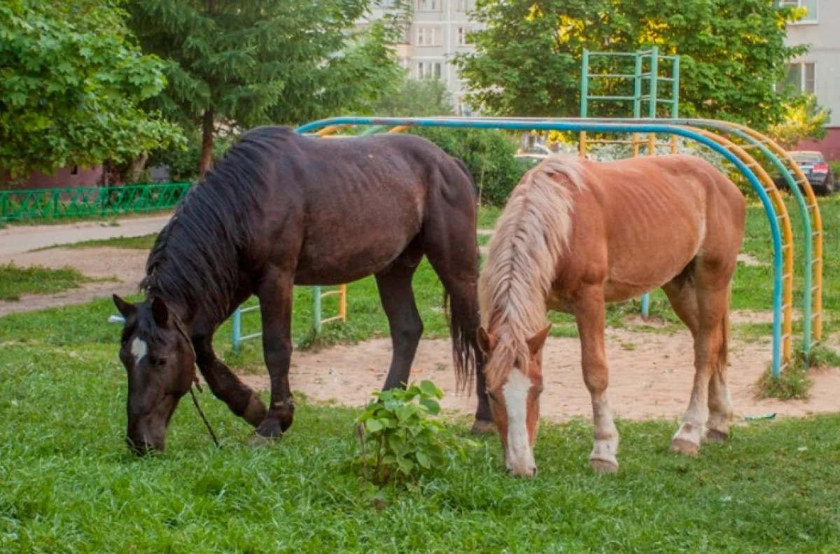 Тогда в полиции проигнорировали обращения граждан, решив, что в гуляющих лошадках по газонам нет никакого состава правонарушения.