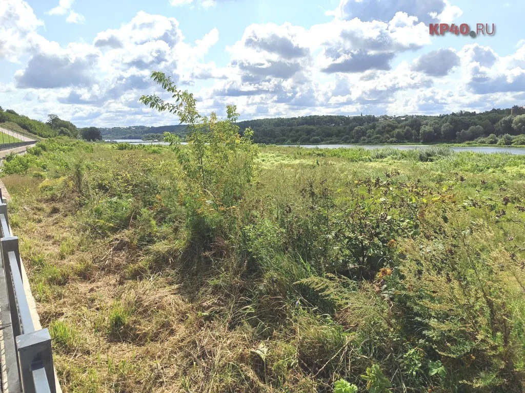 Первое, что бросается в глаза – зеленое поле кустов и деревьев. Сорняки вновь оккупировали берег и, если все так и останется, то через год-два, въезжая в Калугу с правого берега, можно будет снова лицезреть глухие заброшенные заросли.
