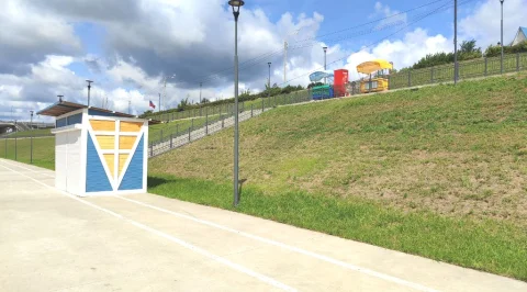Футбол, теннис, петанк, тренажеры, беговая и велосипедная дорожки.