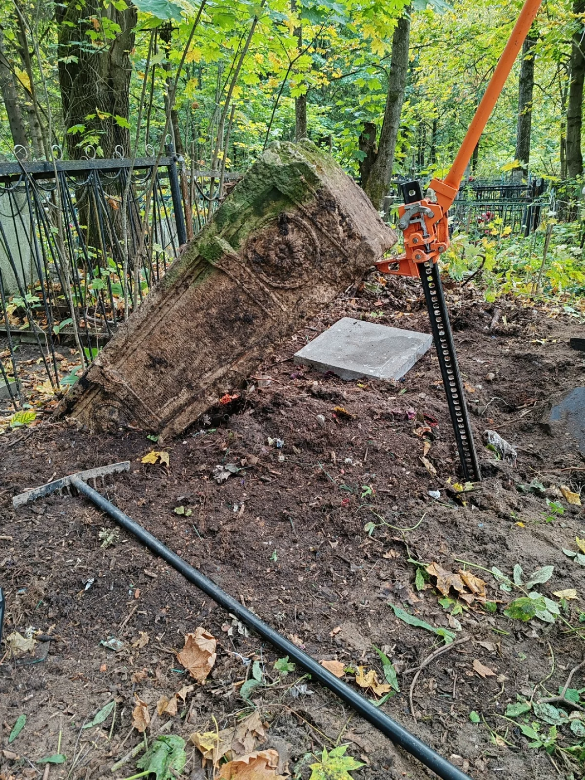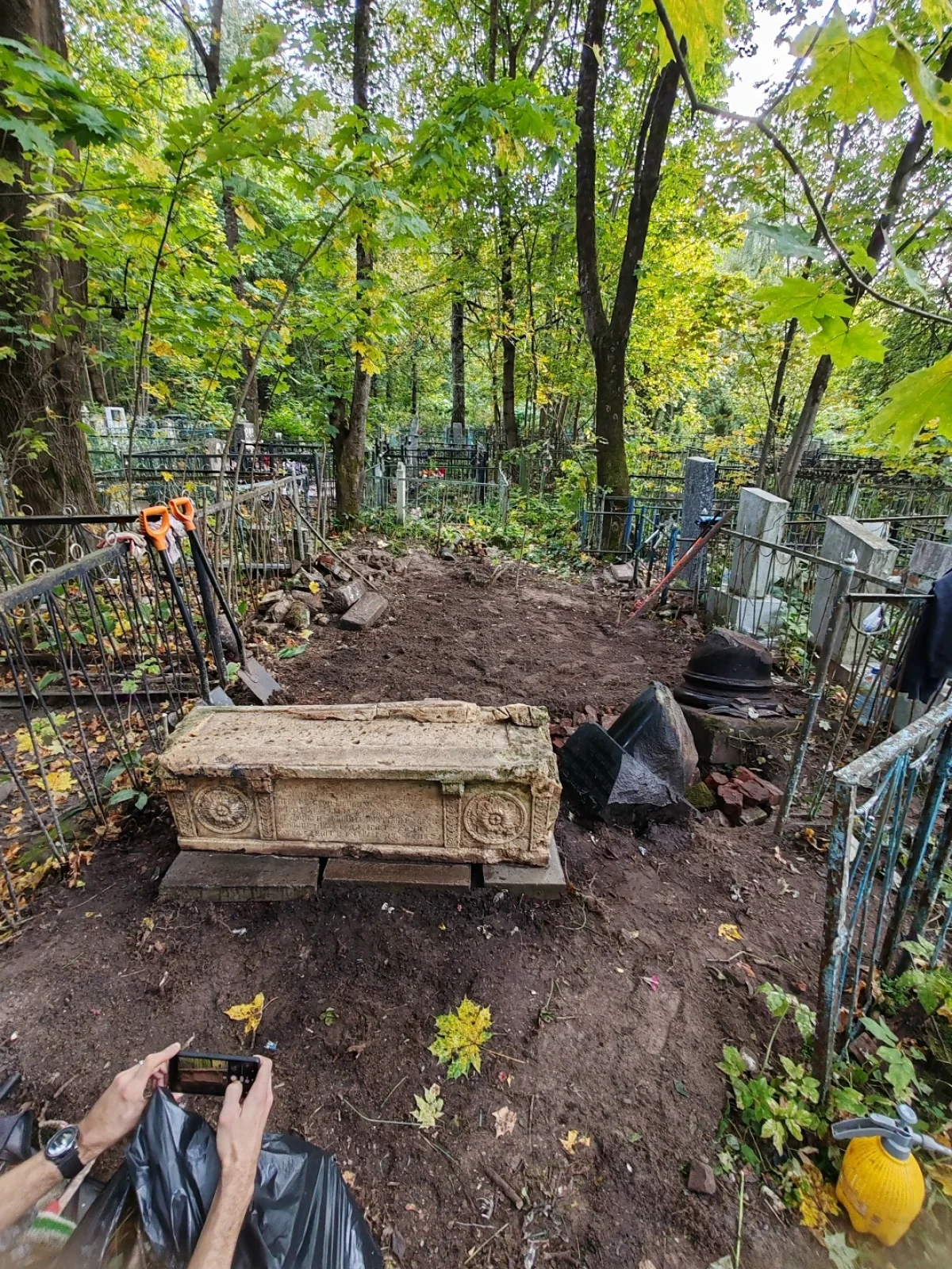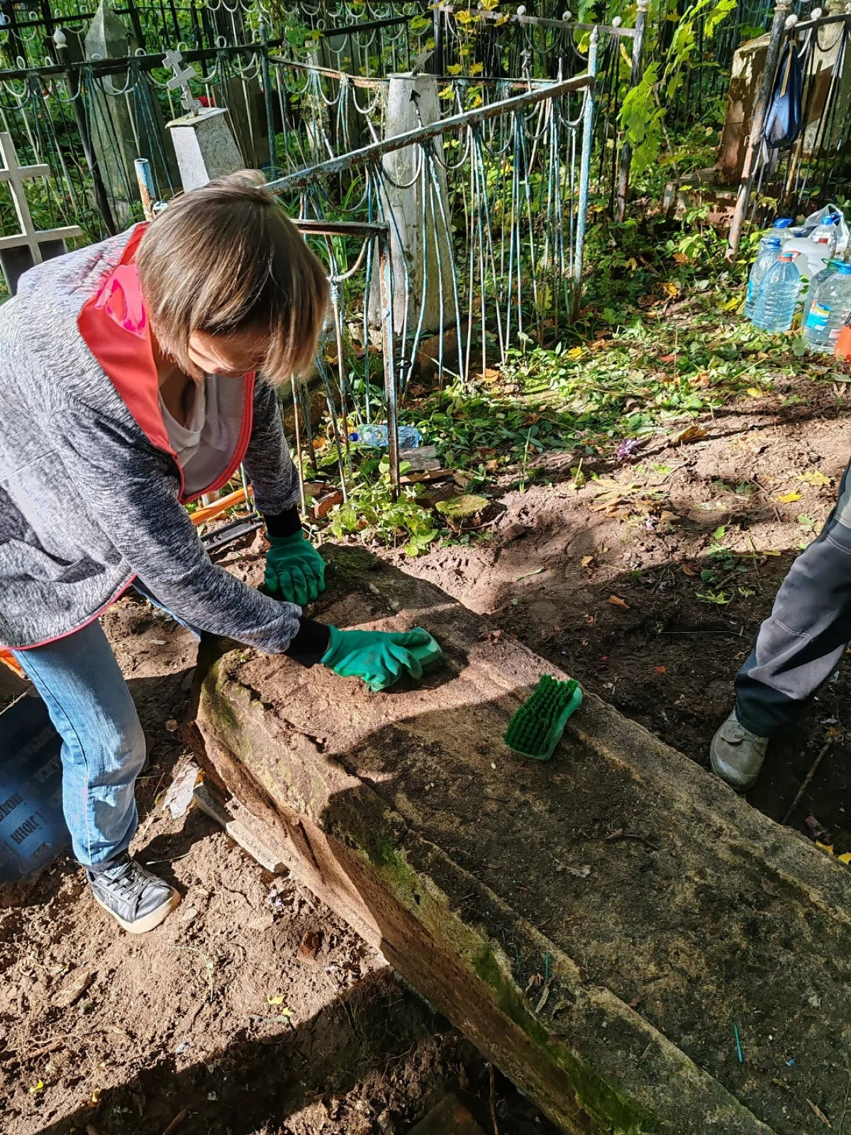 С небольшого замусоренного и заброшенного участка 3х12 м, были подняты, отмыты и обработаны специальными составами против мха и разрушения три дореволюционных надгробия, два саркофага и одно расколотое гранитное надгробие.