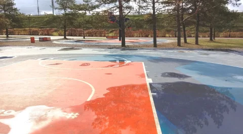 Действительно, для любителей баскетбола были созданы отличные условия для тренировок и игры. Тут и площадка для соревнований, и для стритбола, и для оттачивания бросков.