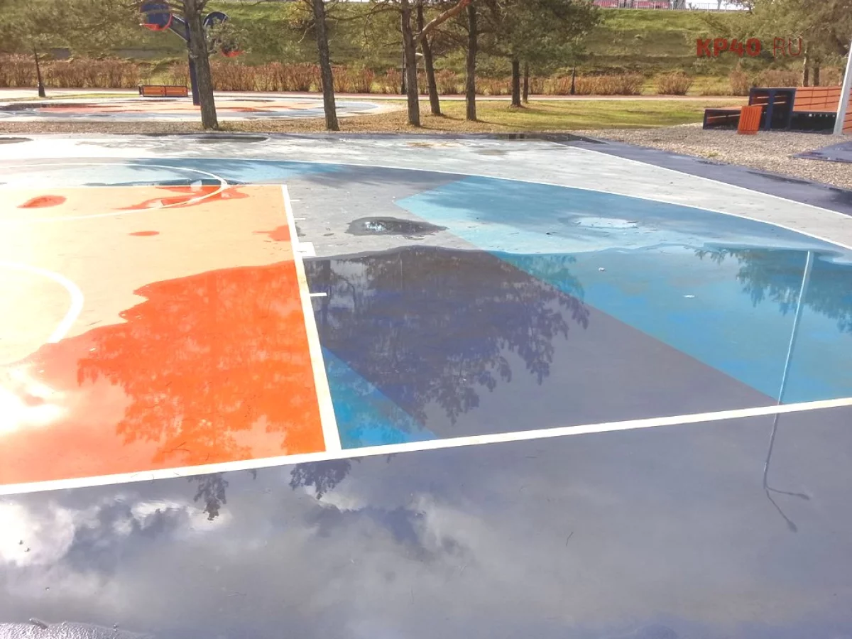 Баскетбол подмочили: лужи на площадке в Калуге объяснили