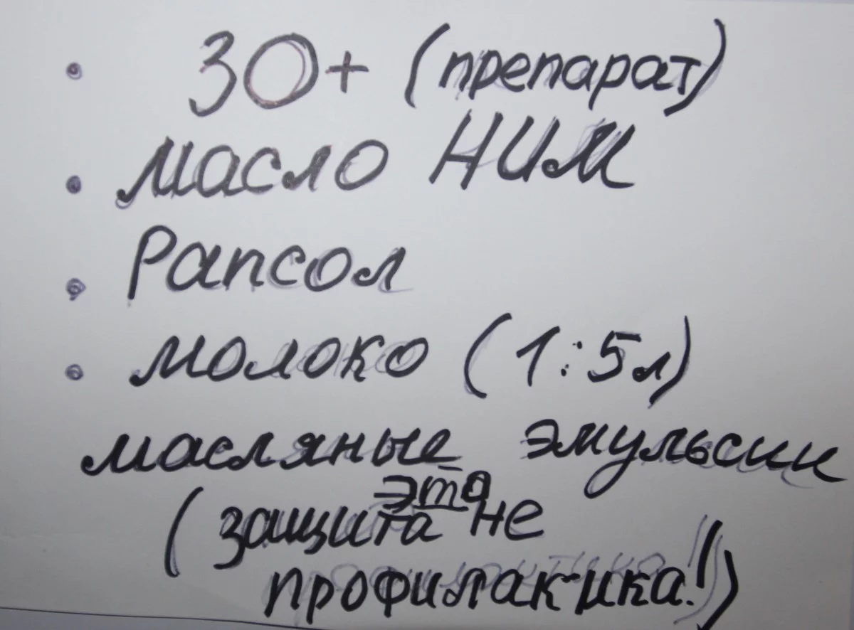 Масло ним или препарат 30+ — для обработки деревьев ранней весной, когда еще лежит снег. Они закупоривают дыхательные отверстия яиц вредителей и расщепляют верхний хитиновый слой яйца.