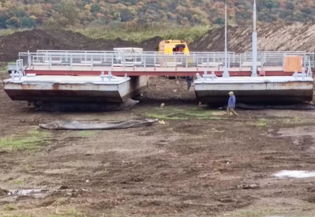 Однако раз в пять лет наплавной мост не просто разводят, но выносят на берег для плановой диагностики, обследования и оценке технического состояния. После этого проходит и ремонт. Такую процедуру «старичок» проходит и сейчас. Работы по буксировке и вытаскиванию на сушу начались в конце сентября – начале октября.