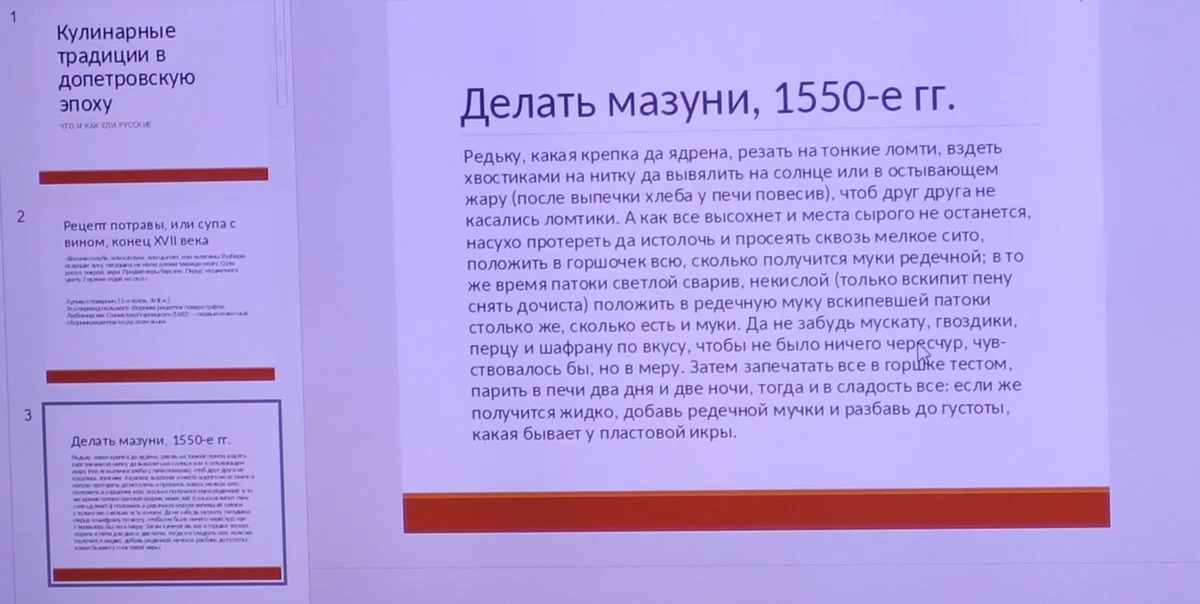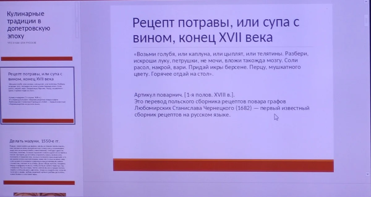 Она выступила с лекцией «Кулинарные традиции в допетровскую эпоху».