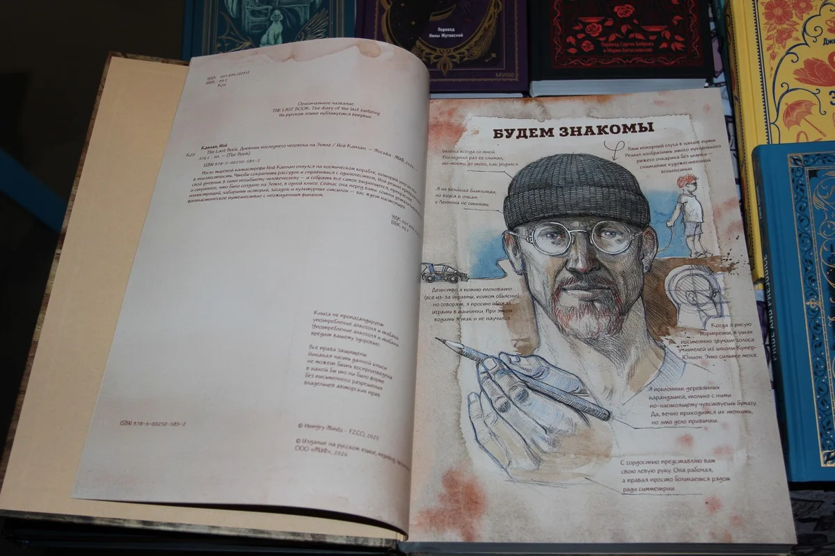 А за 3900 рублей гости могли унести с собой «Дневник последнего человека на Земле» - 376 страниц о самом важном, что успело создать человечество: от мифов и архитектуры до соцсетей и рецептов коктейлей.