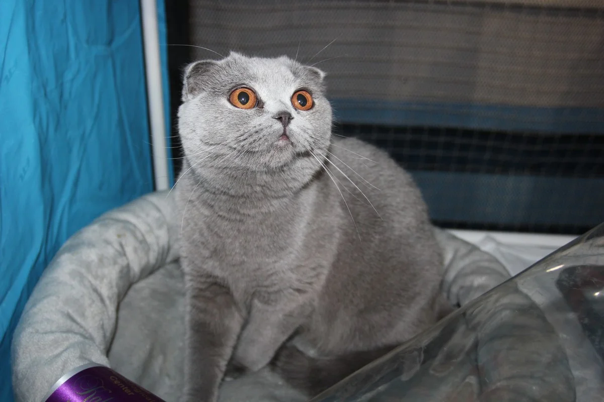 Фабия Вельвет Плюш - шотландская вислоухая голубого окраса.