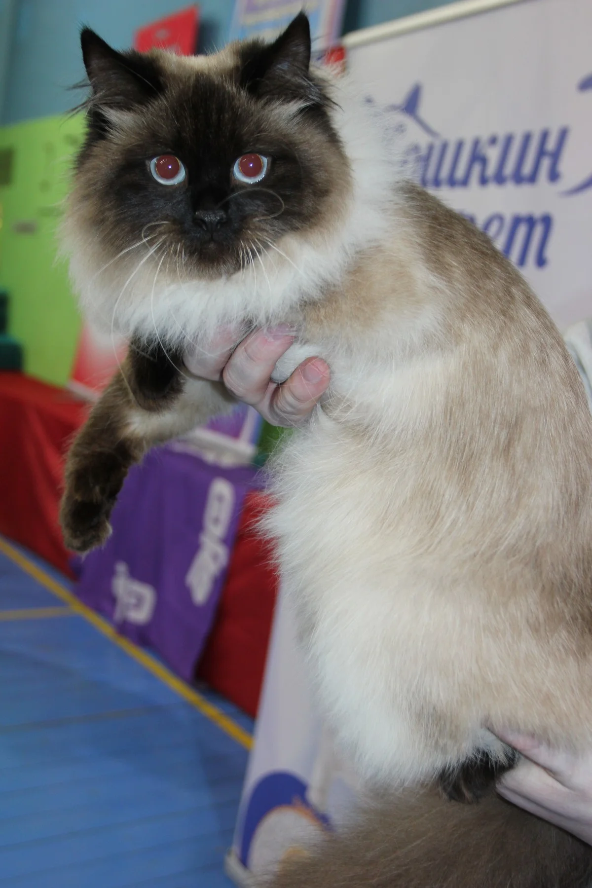- Я выбирал окрас сил-пойнт, который похож на сиамский окрас, - с гордостью говорит хозяин кошечки Роман. – Но у сиамских более треугольная мордочка, а здесь более трапециевидная.