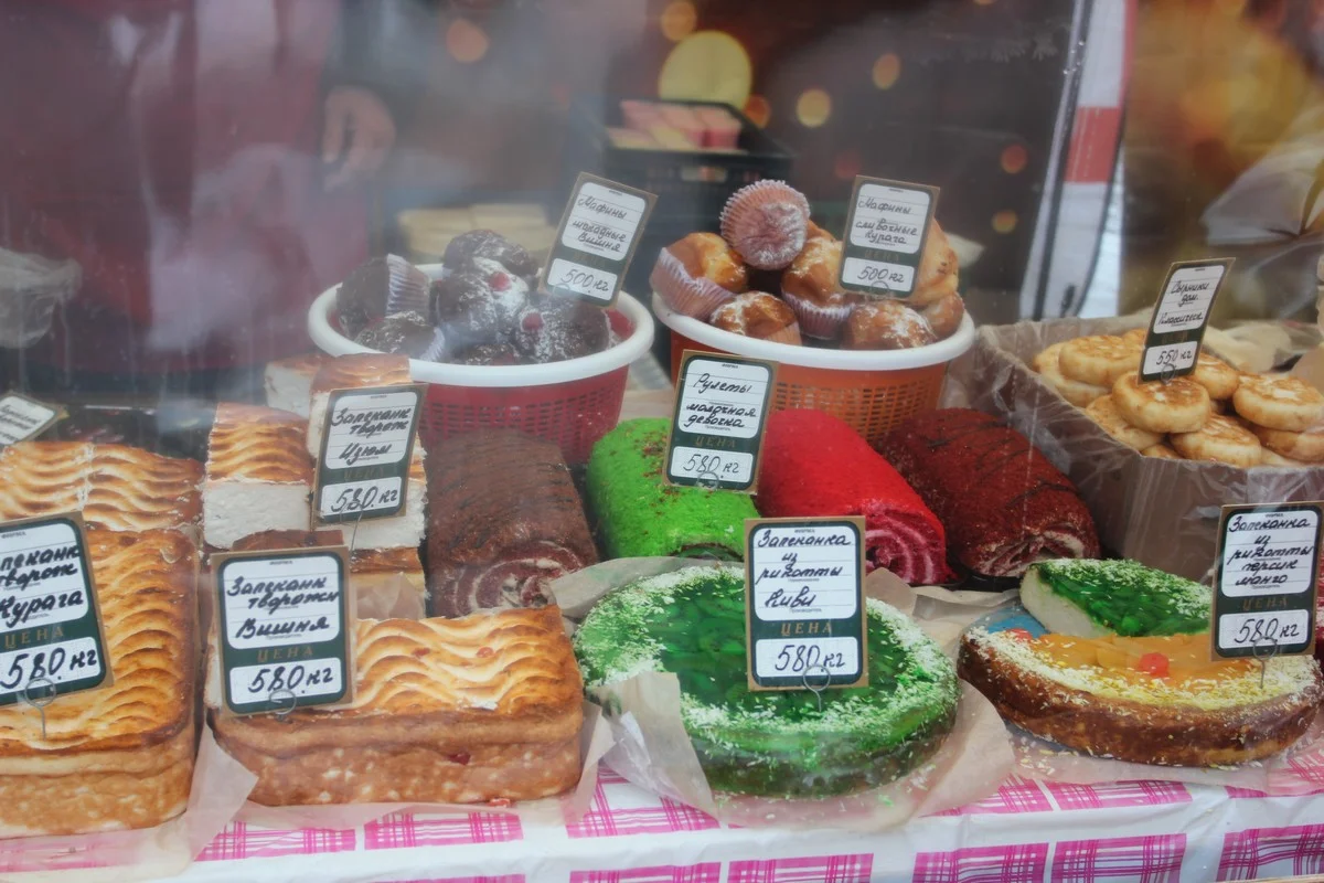 Для сладкоежек - авторский чай за 100 руб./100 г, пирожные – 700-1500 руб. за набор, чурчхела – 200 руб./100 г. Ягоды, протёртые с сахаром, – 1500-2000 руб./кг.