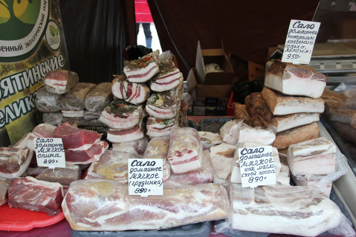 свинина и вырезка - 700 рублей/кг, сало - 890 рублей/кг.