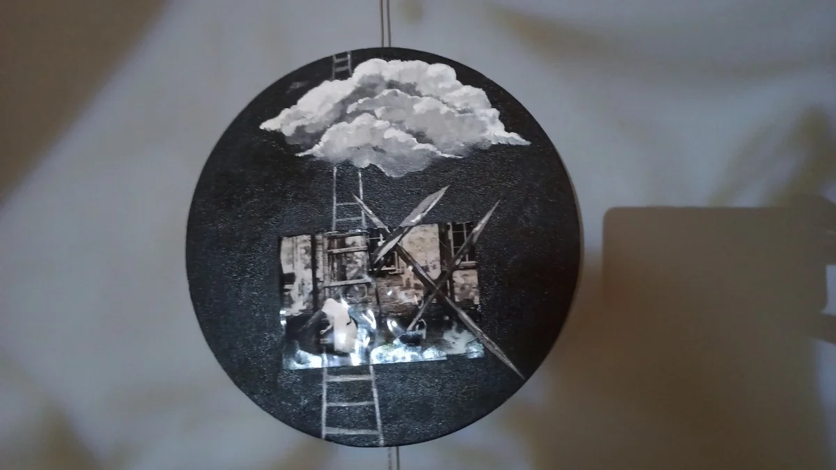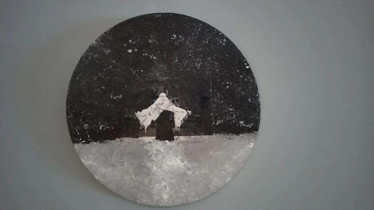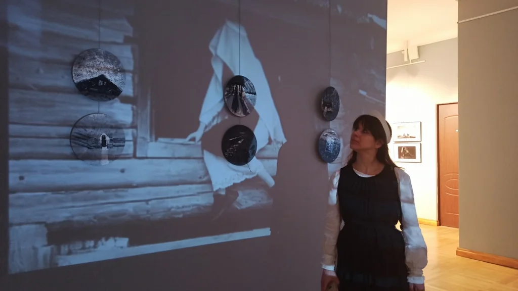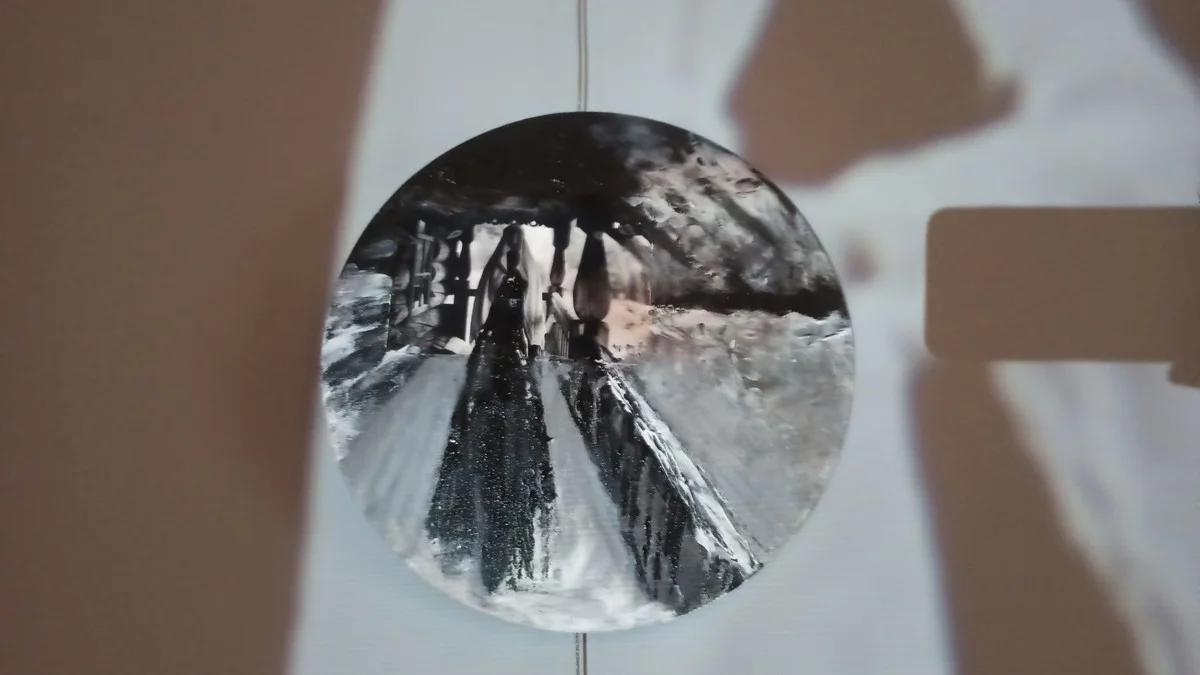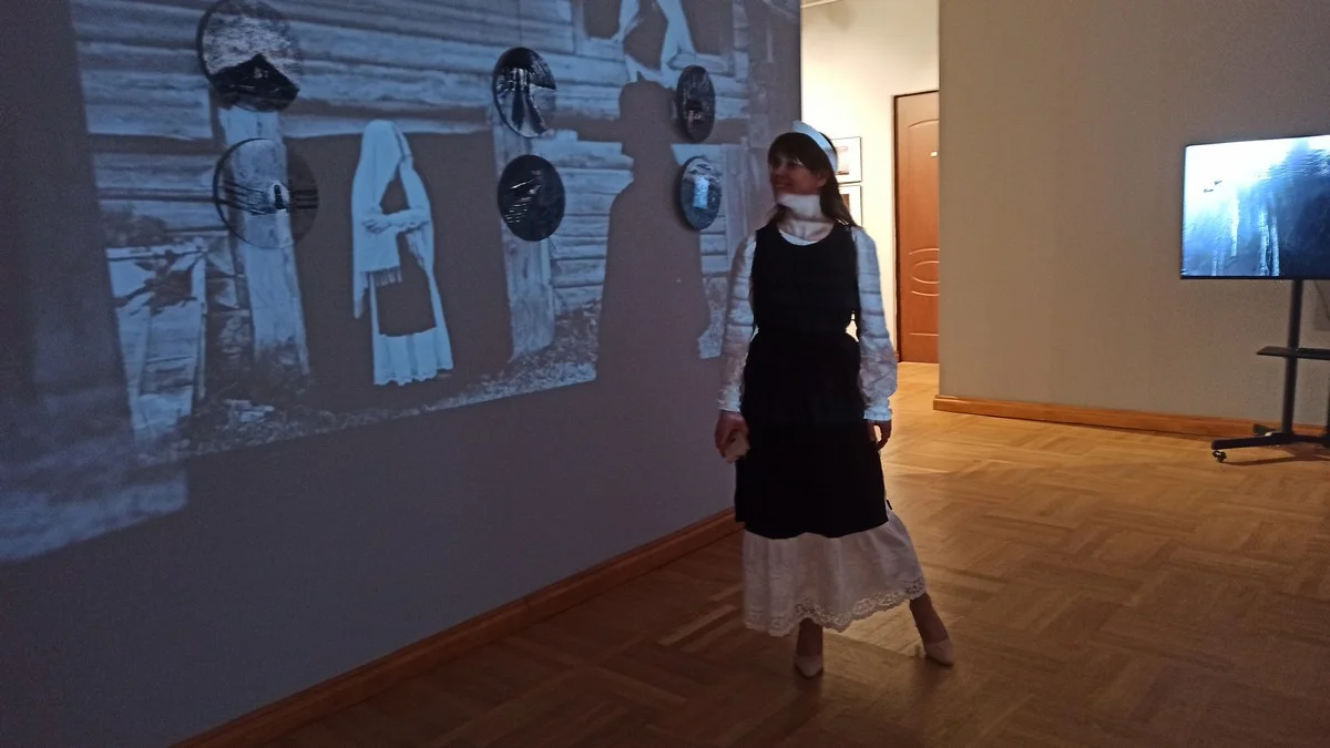 - Это снимки из Архангельской области, - объясняет Евгений. - Фотографии потом были наклеены на холст и разрисованы акрилом. Далее мы их анимировали с помощью ИИ, смонтировали в ролик и наложили текст.