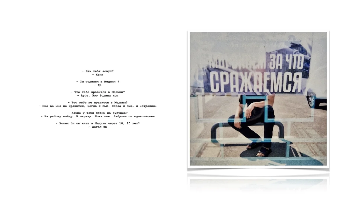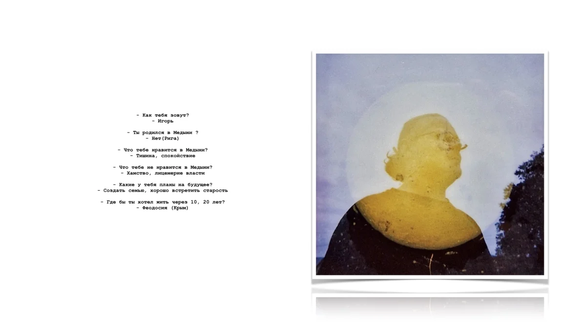 Евгений также представил социальный проект «Типичный любимец» о жителях Медыни, снятый на полароид. Использовал комбинированный метод, наложение фото. - Я, как автор, пытался посредством жителей, их отношения к месту, понять, стоит ли оставаться в городе. Это было некое социальное исследование.