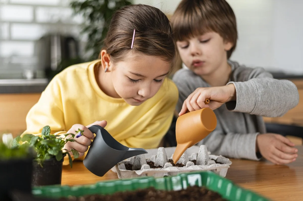 разложите разный грунт по стаканчикам и подпишите, а потом посейте в них по 2-3 семена из одного пакетика, например, огурцов.