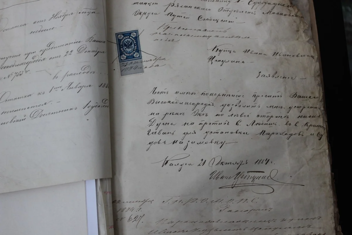 В Государственном архиве Калужской области сохранилось заявление от 21 октября 1884 года, которое подавал сын Ивана Кузьмича – Иван Иванович. Как рассказала представитель архива Светлана Симоненкова, он просил разрешения устроить на реке Оке, в селе Красном Тарусского уезда, гавань для зимовки пароходов.