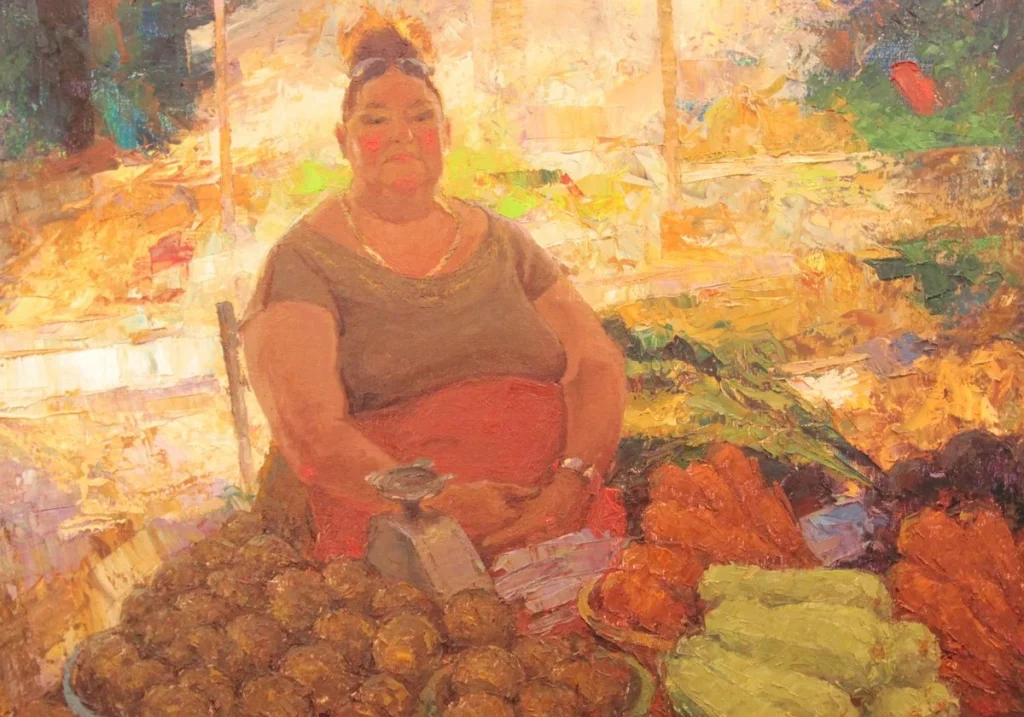 В экспозиции около 50 работ: пейзажи, портреты, зарисовки. Масло, акварель, графика.