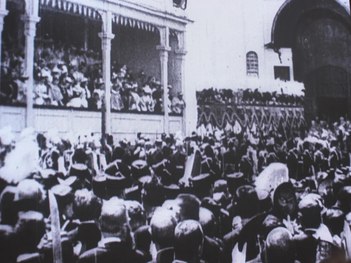 В архиве лежала и уникальная вещь, снятая 120 лет назад - открытие первого заседания Государственной Думы Российской империи 27 апреля 1906 года. Снимал оператор Ягельский.