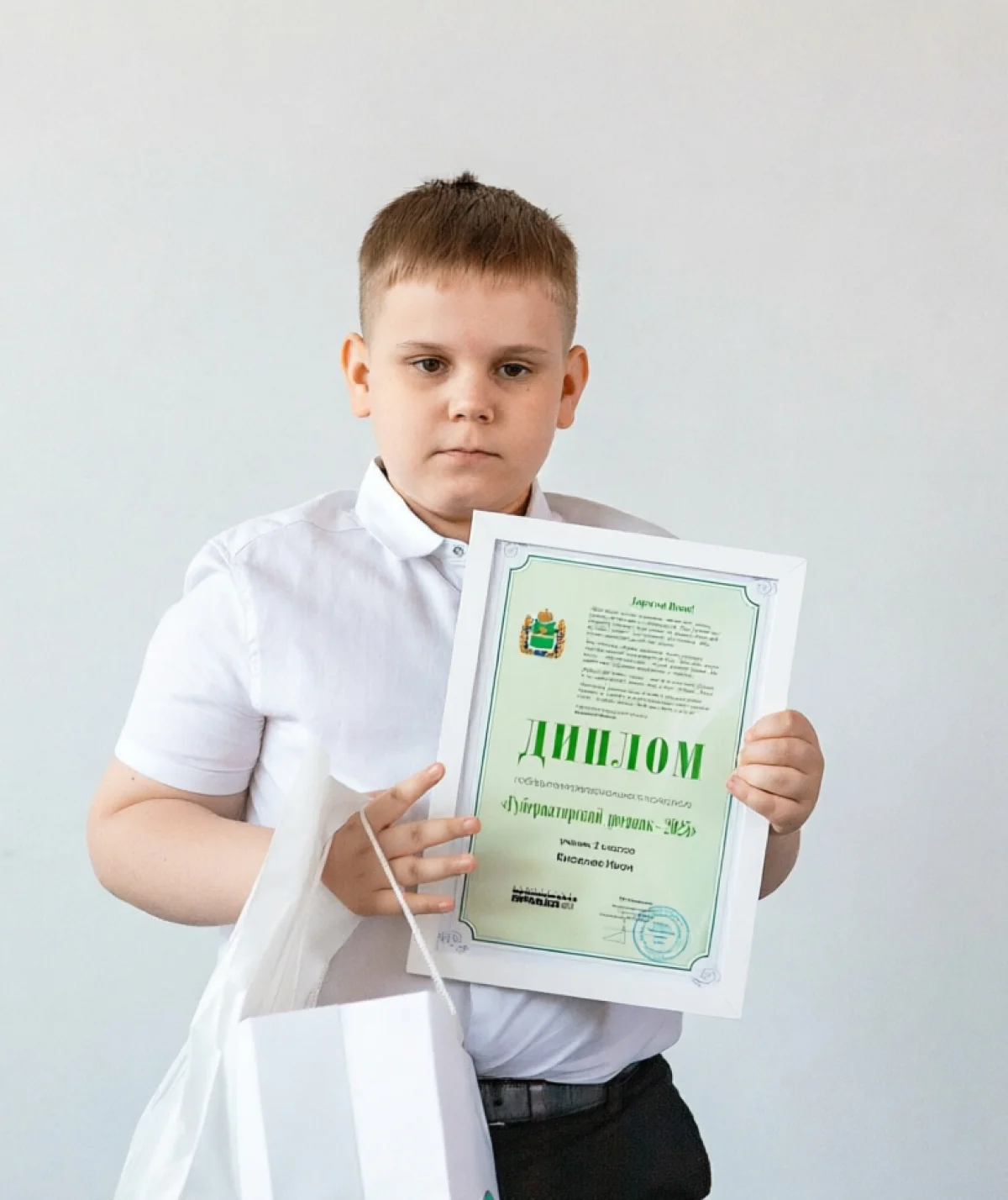 - О том, что мы стали победителями конкурса, сообщила учительница. Конечно, нам не верилось, что мы войдем в число лучших — ведь в проекте участвовали очень сильные ребята со всей области. Но когда Ваня получил диплом победителя, он был просто счастлив!