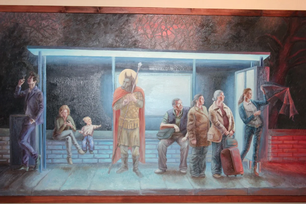 Дарья Соколова в работе «Невидимый защитник» (первое фото вверху) взяла тему духовной поддержки и защиты, которая сопровождает человека, даже когда никто вокруг этого не замечает.