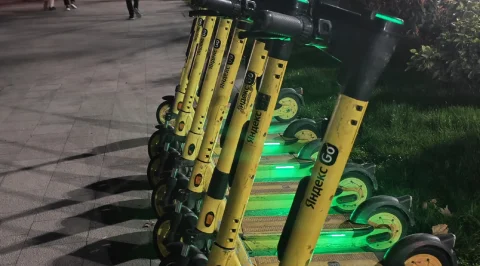 На тротуаре в ряд выстроились до боли знакомые желтенькие электросамокаты. Точно такие же, как и те, что появились в Калуге в апреле.