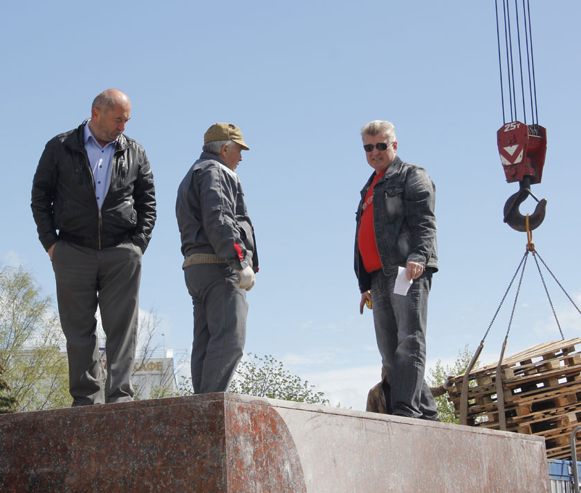 Операция по водружению скульптуры на двухметровый постамент началась в 11:00. С постамента убрали навес. Шеститонную статую зацепили стропами и начали медленно-медленно поднимать. Чиновники и рабочие, вооружённые мобильными и фотоаппаратами, замерли в ожидании. Памятник на несколько секунд завис в воздухе, затем продолжил движение вверх. Весь процесс занял около 15 минут. Ещё минут 10 рабочие корректировали положение скульптуры на самом постаменте.