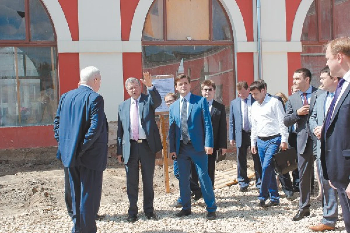 В минувший понедельник городские и областные чиновники решили собственными глазами увидеть, как продвигается реставрация ансамбля «Гостиный двор». Внутри Гостиных рядов они провели совещание.