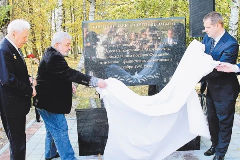 Под звуки оружейного салюта в Ферзиково открыли памятник 340-й стрелковой дивизии, бойцы которой под командованием Героя Советского Союза Саркиса Мартиросяна в конце декабря 1941 года освободили этот районный центр от немецко-фашистских захватчиков.