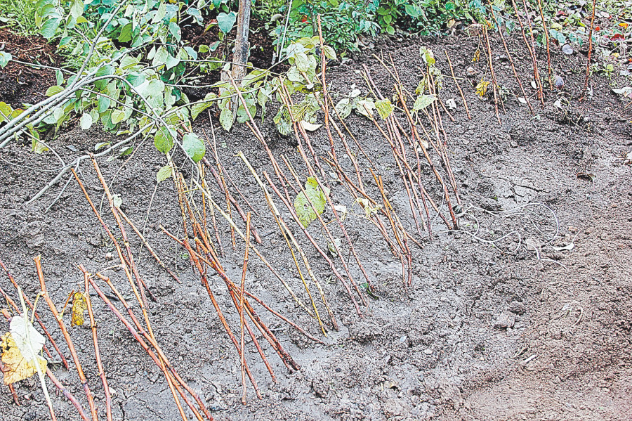 — Копается траншея, саженцы прикапывают горизонтально к земле — под углом где-то в 45 градусов, ветки должны смотреть на север, — рассказывает Максим Михайлович.